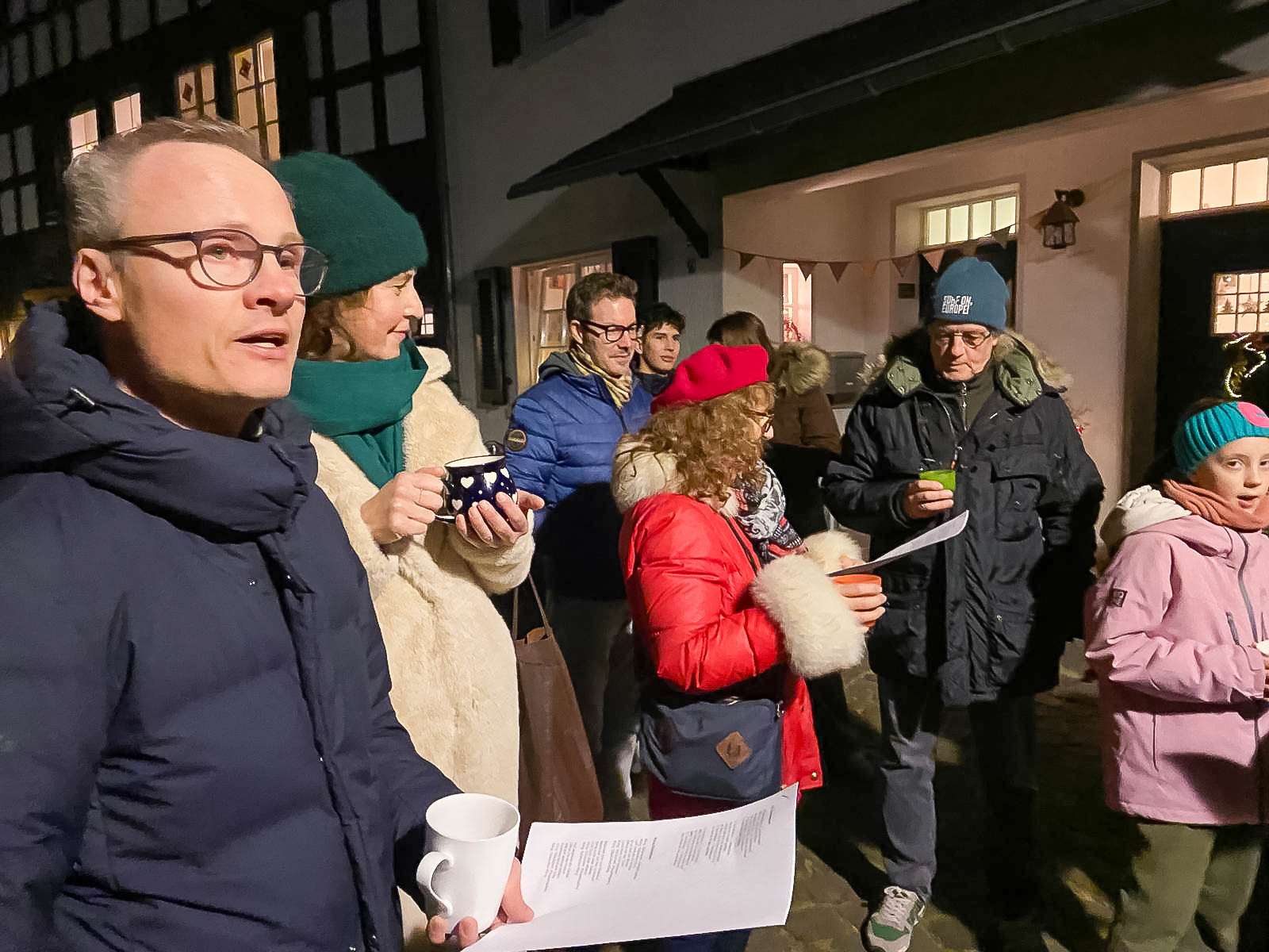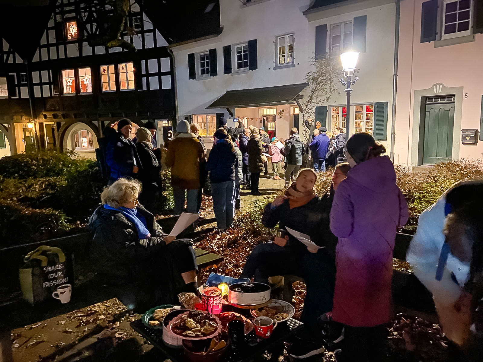 Unsere Nachbarschaft ist ja wirklich engagiert und aktiv und hat immer wieder tolle Ideen. In der Adventszeit 2025 gab es wieder täglich ein neues Adventsfenster zu entdecken, zum Start hatte Kati bei Feuerschein in ihren Garten eingeladen und gestern Abend gab es zur Einstimmung auf Heiligabend ein gemeinsames Singen unter der Eiche! Die emsigen Nachbarn am Platz an der Eiche hatten eingeladen und Glühwein parat gestellt. Viele Nachbarn waren dabei und schmetterten die Klassiker der deutschen Weihnachtslieder – kurz wurde es mit „Feliz Navidad“ sogar noch international 😉 Ein ganz herzliches Dankeschön an alle, die diese neueste Tradition geplant und organisiert und für einen wunderschönen Abend gesorgt haben! Vielen Dank auch an Monika für die schönen Erinnerungsfotos!