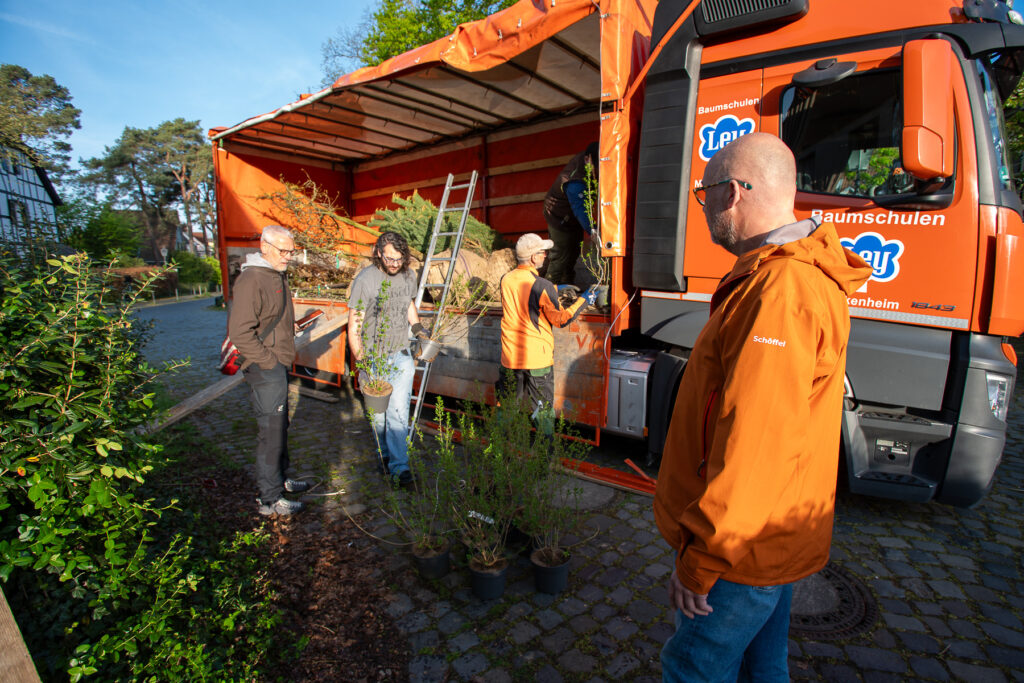 Die Anlieferung, Verteilung und Pflanzung lief gestern unter der fachmännischen Aufsicht von Michael Müller, der zwei Bufdis zur Unterstützung mitgebracht hatte. Aber auch etliche Nachbarn halfen mit viel Kraft, Wissen und Zeit mit, die Aktion zu einem Erfolg werden zu lassen. Wir danken allen Organisatoren, Helfern und Pflanzern für Ihre Unterstützung und die viele Mühe, die sie investiert haben!