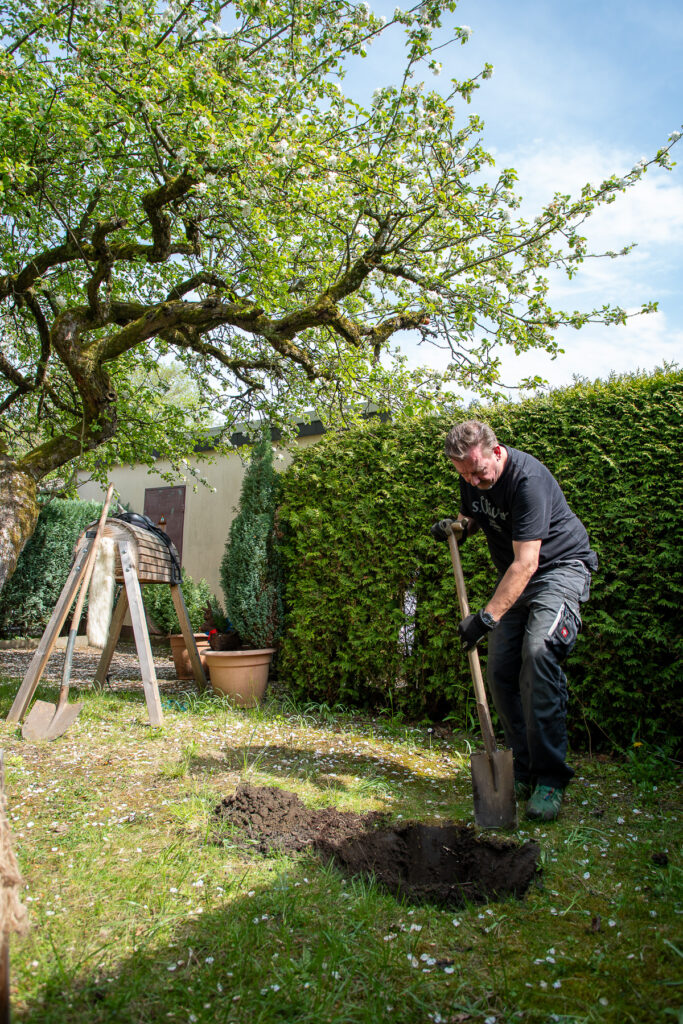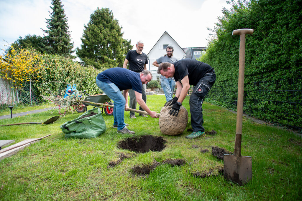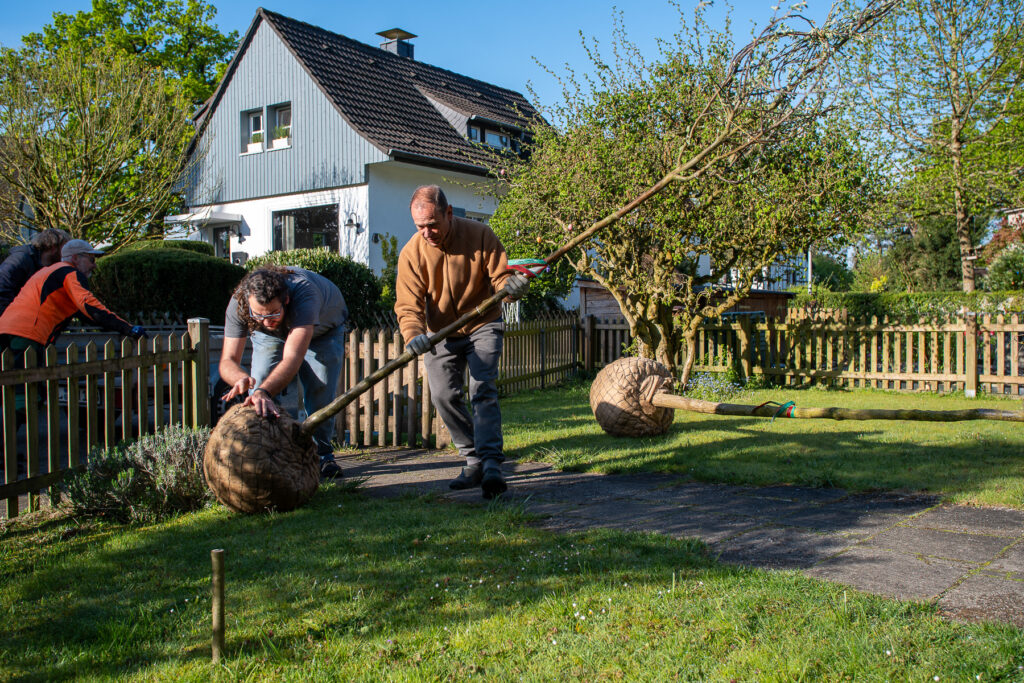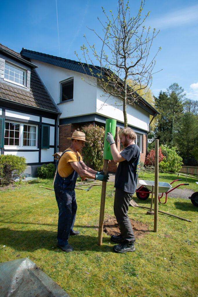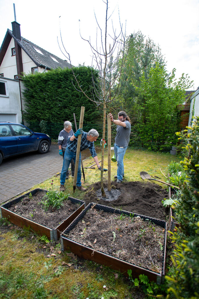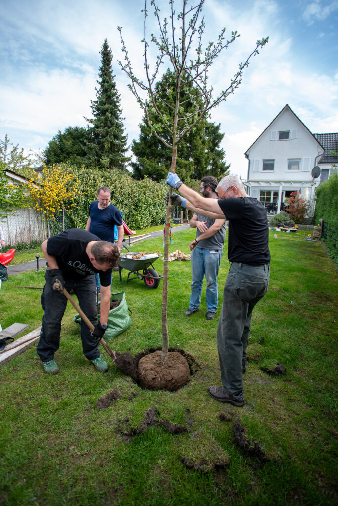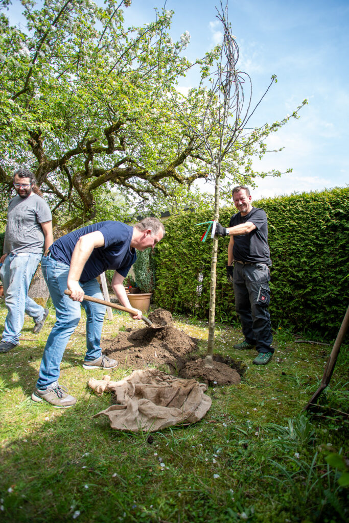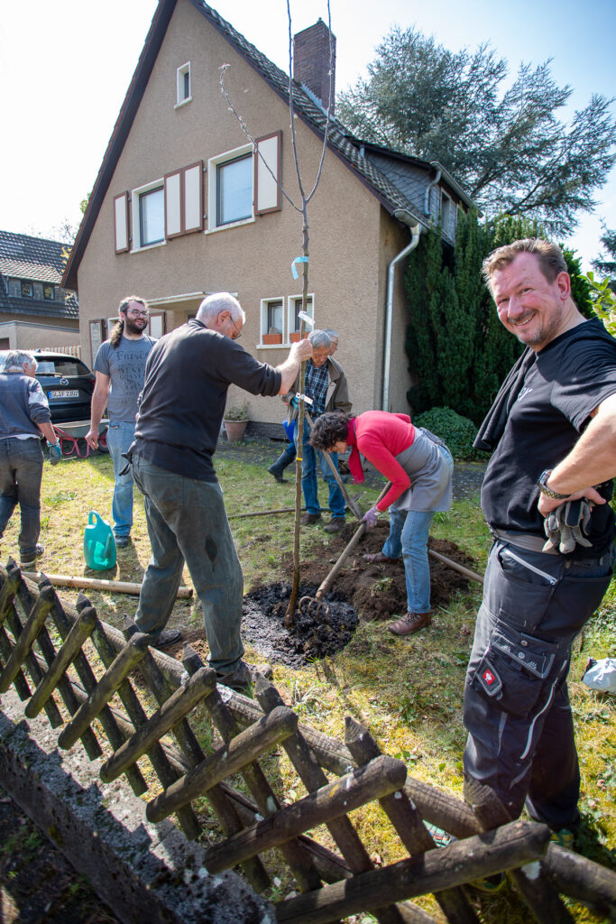 Die Pflanzaktion war seit dem Herbst in Vorbereitung gewesen und diesmal hatten Thomas und Stephan sogar an etlichen Haustüren geklingelt, um für das Anpflanzen neuer Bäume zu werben. Vor Ort berieten sie vielfach hinsichtlich der Auswahl der geeignetesten Bäume und bestimmten die genauen Stellen für die Pflanzung.
